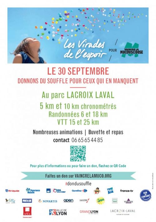 Rendez-vous au Parc Lacroix Laval pour les marches de l’espoir et pour profiter de toutes les animations et la course du souffle. Parmi toutes les manifestations de Vaincre la Mucoviscidose, les Virades de l’espoir représentent, depuis 1985, LA journée nationale de lutte contre la mucoviscidose.