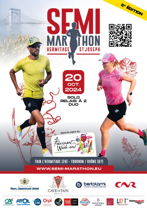 1ère édition du Semi Marathon Hermitage St Joseph qui reliera les deux célèbres appellations viticoles en partant de Tournon, en Ardèche, pour arriver de l'autre côté de la rive du Rhône sur Tain l'Hermitage, dans la Drôme.