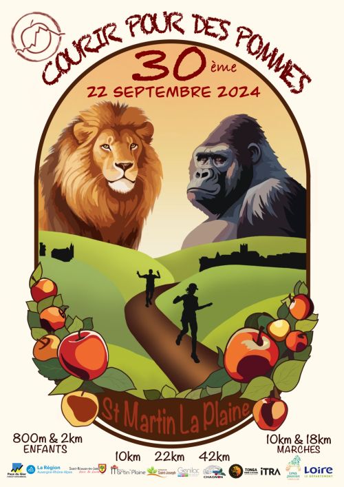 Courir Pour des Pommes avec 3 parcours trail, randonnées et courses enfants au départ de Saint-Romain-en-Jarez.
