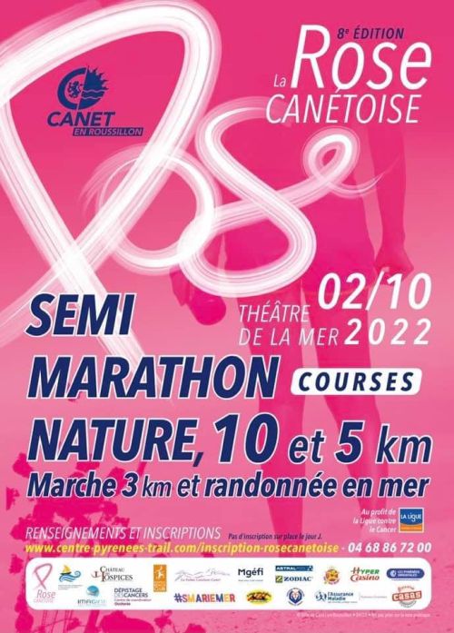 L’Association des commerçants et artisans de Canet Plage, en partenariat avec « Imagine Canet » organise La Rose Canétoise, une course de 10 kms et de 5 kms ainsi qu’une marche d’une distance d’environ 2,5 kms et une rando en mer de 1 km 500