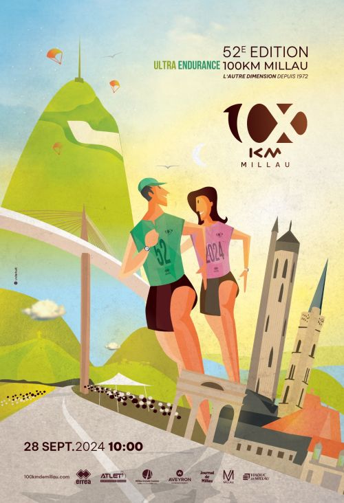 100 km à pied, style libre sur routes goudronnées, dans un délai maximum de 24 heures. Le circuit est composé d’une première boucle allant de Millau à Millau en passant par Le Rozier et Peyreleau. Cette première boucle correspond à la distance exacte du marathon. La deuxième boucle est un aller-retour entre Millau et Saint-Affrique avec un double passage sous le Viaduc de Millau.