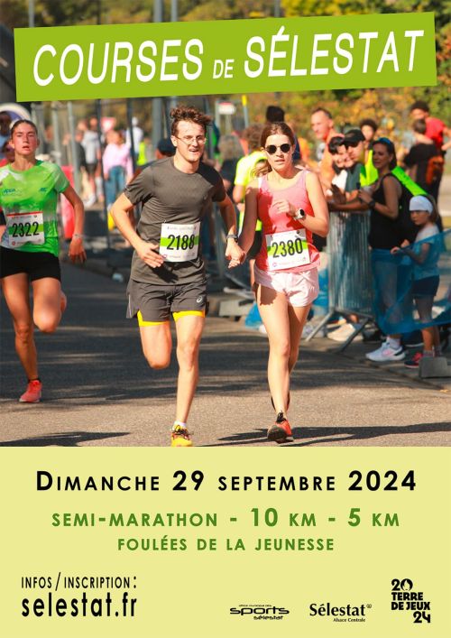 La Ville de Sélestat, l'Office Municipal des Sports et l'ensemble du tissu associatif local vous proposent les courses de Sélestat. Le semi-marathon bénéficiera du Label Régional des courses Hors Stade accordé par la Fédération Française d'Athlétisme. L'épreuve du 10 km bénéficiera quant à elle du Label National et comptera pour les Championnats d'Alsace. Et l'épreuve du 5 km bénéficiera du label régional.