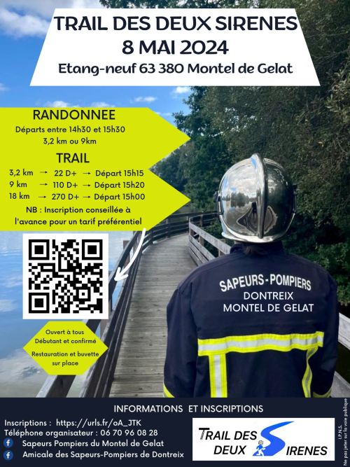 L'organisation du Trail des deux Sirènes de l'Etang Neuf est assurée par l’amicale des sapeurs-pompiers de Montel de Gelat (63) et l’amicale des sapeurs-pompiers de Dontreix (23). L'accueil des participants ainsi que le départ et l'arrivée se situent au local de l'étang neuf.