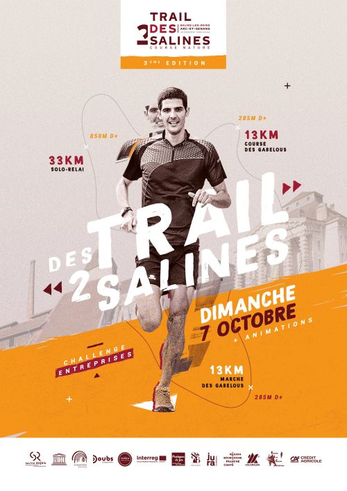 Le Trail des 2 Salines relie par la Via Salina la Saline mère de Salins-les-Bains à la Saline Royale d’Arc-et-Senans en 33 kilomètres et 850m D+. Un tracé sportif et varié qui suit une bonne partie du tracé de l’ancien saumoduc (canalisation en bois qui acheminait l’eau salée de Salins-les-Bains vers Arc-et-Senans) entre les deux Salines, par les vallées de la Furieuse et de la Loue.
