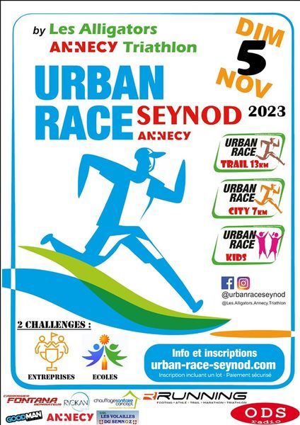 L' UrbanRace est une course/trail qui se court sur les chemins et routes de l'ancienne commune de Seynod, organisée par le club des Alligators Annecy Triathlon. 2 parcours adultes vous attentent : un trail de 13 km et un city de 7 km, ainsi que des parcours adaptés pour les plus jeunes.