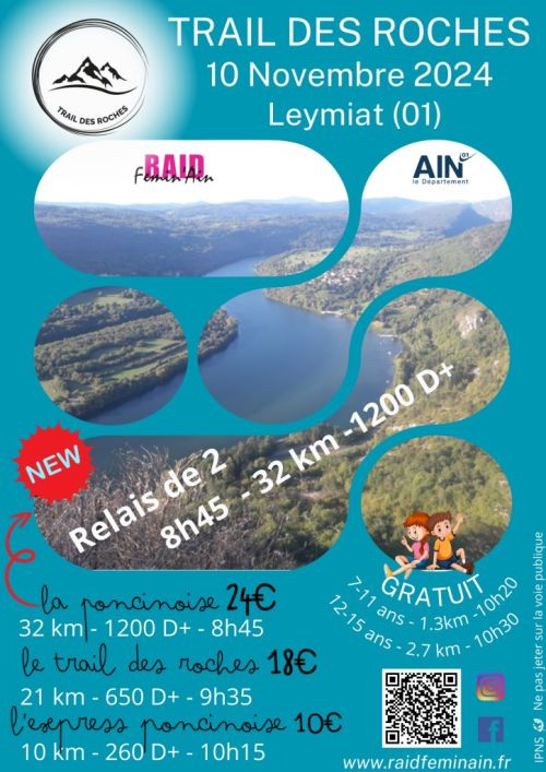 Le Raid Fémin'Ain organise le Trail des Roches avec 2 parcours trails au départ du Hameau de Leymiat, Place du Pré Rond.