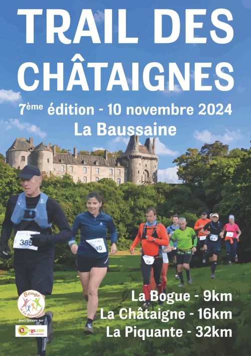 L’association «Bouge à La Baussaine» propose une 3ème édition du «Trail des Châtaignes » au départ de La Baussaine. Les tracés des 2 courses ont été légèrement modifiés par rapport à l'édition précédente. 1€ par inscription sera reversé à l'association "Ensemble, aidons Gabin" !