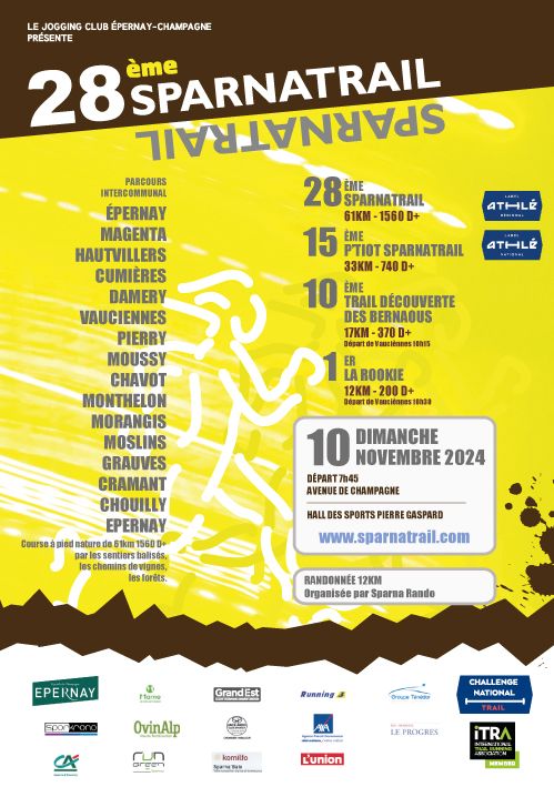 Le Sparnatrail est l’un des tous premiers trail créé au nord de la Loire en 1996, à l'époque où le phénomène trail n'existait pas encore. 3 épreuves et 1800 coureurs pour découvrir sous les couleurs de l’automne, les célèbres coteaux champenois dont ceux d’Hautvillers récemment classés au patrimoine mondiale de l’UNESCO .