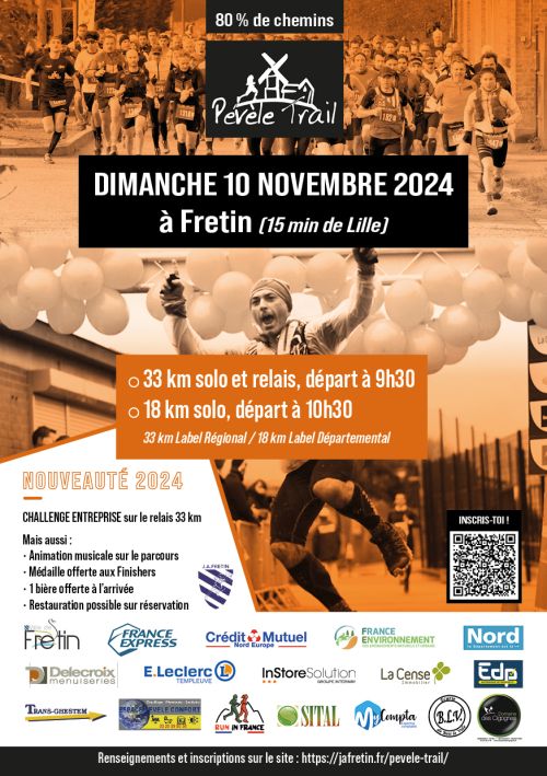 Le JA-Fretin organise la Pévèle trail en marge de la commémoration de la cérémonie du 11 Novembre. Le circuit est de type campagnard avec au menu : des zones pavées du Paris Roubaix, des voyettes, du sous- bois, un passage à la ferme, le moulin de Vertain, la ferme d’Aigremont, et aussi la réserve naturelle de Péronne et le parc de Fretin.