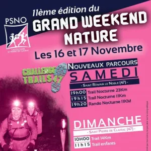 Nouvelle édition de la fameuse Nocturne Lot & Garonnaise. La nouveauté avec le trail court 11km, et la version longue en ligne de 23 km ! Les organisateurs du PSNO concoctent chaque années des surprises et des itinéraires différents, ce sera forcément le cas de cette édition de la nocturne inscrite au challenge des trails 47.