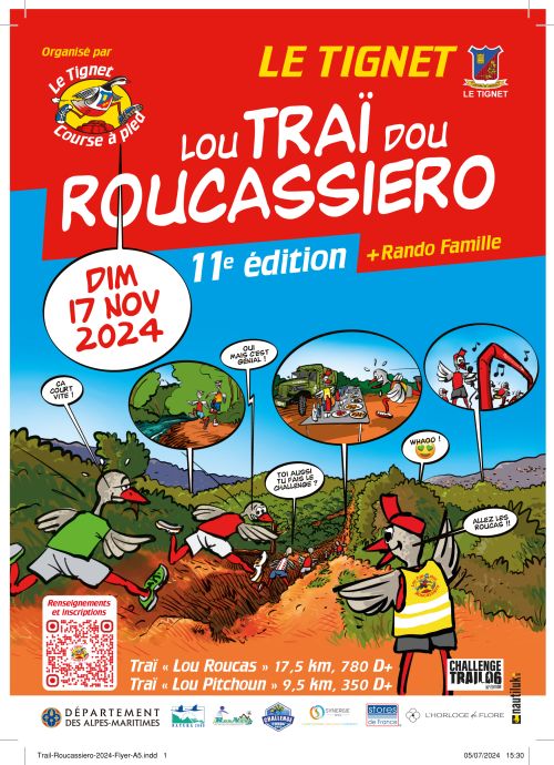L’association Le Tignet course pied organise la 7ème édition du Trail de Roucassiero, course pédestre en autosuffisance en milieu naturel ouverte à tous à partir de la catégorie « cadet » (16 ans et plus).