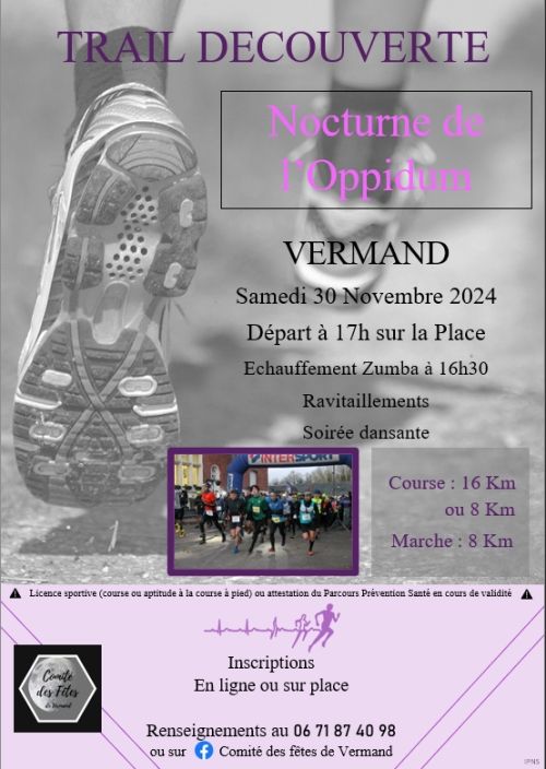 Trail Nocturne sur un parcours de 8 km le 30 novembre 2024