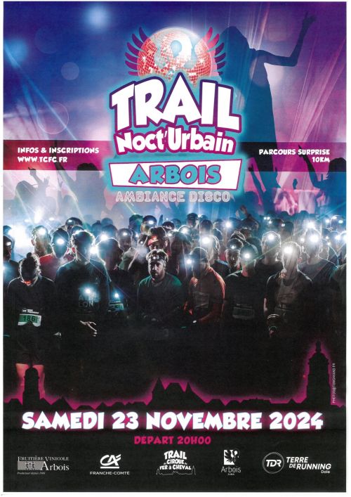 L’association « Trail du Cirque du Fer à Cheval » et la Ville d’Arbois vous propose un trail nocturne et urbain dans les rues de notre superbe citée vigneronne jurassienne. Vous déambulerez dans une ville d’histoire, de culture et de personnages illustres sur un parcours de 10km plein de surprises.
