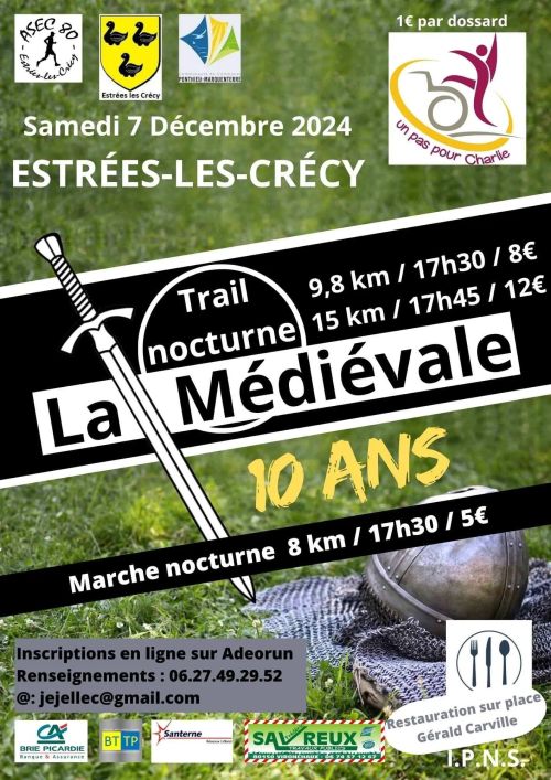 L'association « AS ESTREES LES CRECY » organise la cinquième édition de « La Médiévale », course nocturne de 15 kms sur routes bitumées, chemins forestiers et chemins ruraux en alternance.