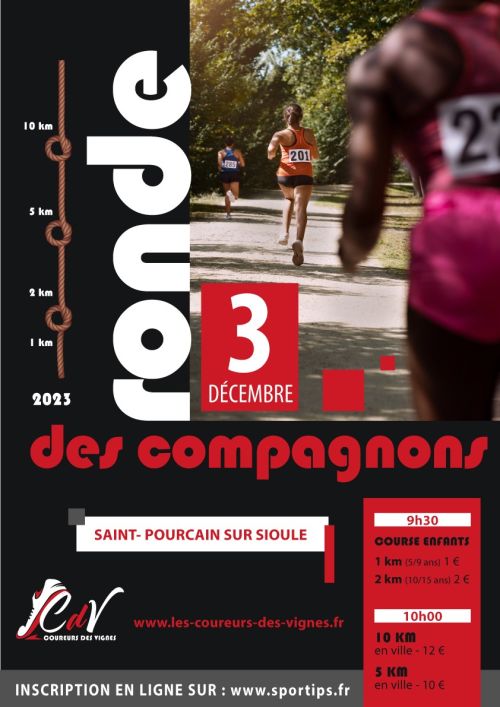 Venez découvrir à travers 2 tracés la Ronde des Compagnons de 5 ou 10 km à travers les rues et bords de Sioule de St Pourçain Sur Sioule. Une récompense à chaque participant.