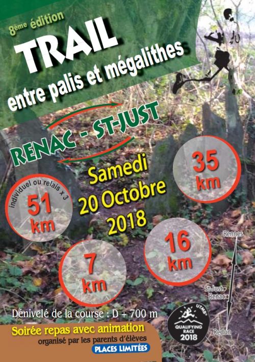 En solo ou en relais : Deuxième relais 20km, de Saint-Just à Renac Premier relais, boucle de 16 km sur Saint-Just Troisième relais, 15 km de Renac à Saint-Just