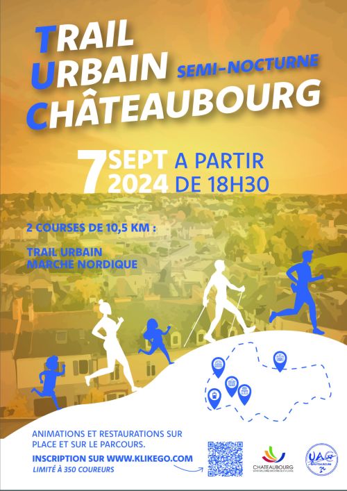 La mairie de Châteaubourg et le club de l'Union d'Athlétique de Châteaubourg vous accueillent pour une nouvelle épreuve en 2024 : un trail et une marche nordique sur un parcours mi-urbain, mi-nature dans une ambiance semi-nocturne.