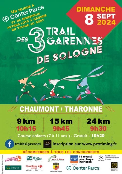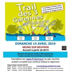Trail des 3 Garennes de Sologne à Chaumont Sur Tharonne propose 3 parcours trail.
