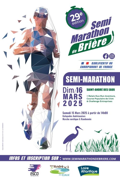 Semi-Marathon de Brière comprend le Semi-Marathon et son nouveau parcours (mesuré FFA), le relais en duo hommes, femmes ou mixte (2x10,5 kms) et la course populaire de 5 kms.