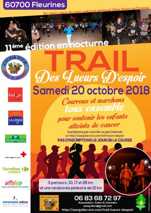 3 parcours Trails en 2018, 10, 26 km et une nouveauté un 17 km ! une randonnée pédestre de 10 km est prévue et cela en plein cœur du parc naturel régional Oise - Pays de France. Trails & rando en nocturne sur les chemins et sentiers de la forêt d'Halatte.