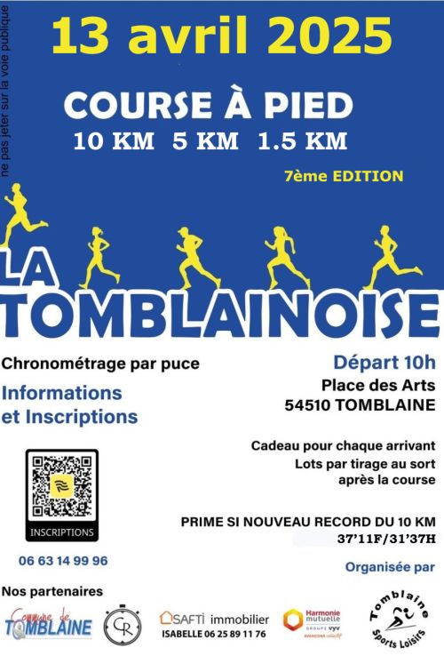 La Tomblainoise propose des épreuves sur route et pistes cyclables majoritairement le long de la rivière Meurthe, sous forme de boucle. Ravitaillement à mi-course en eau, pour le 10 Km et complet à l'arrivée pour toutes les épreuves.