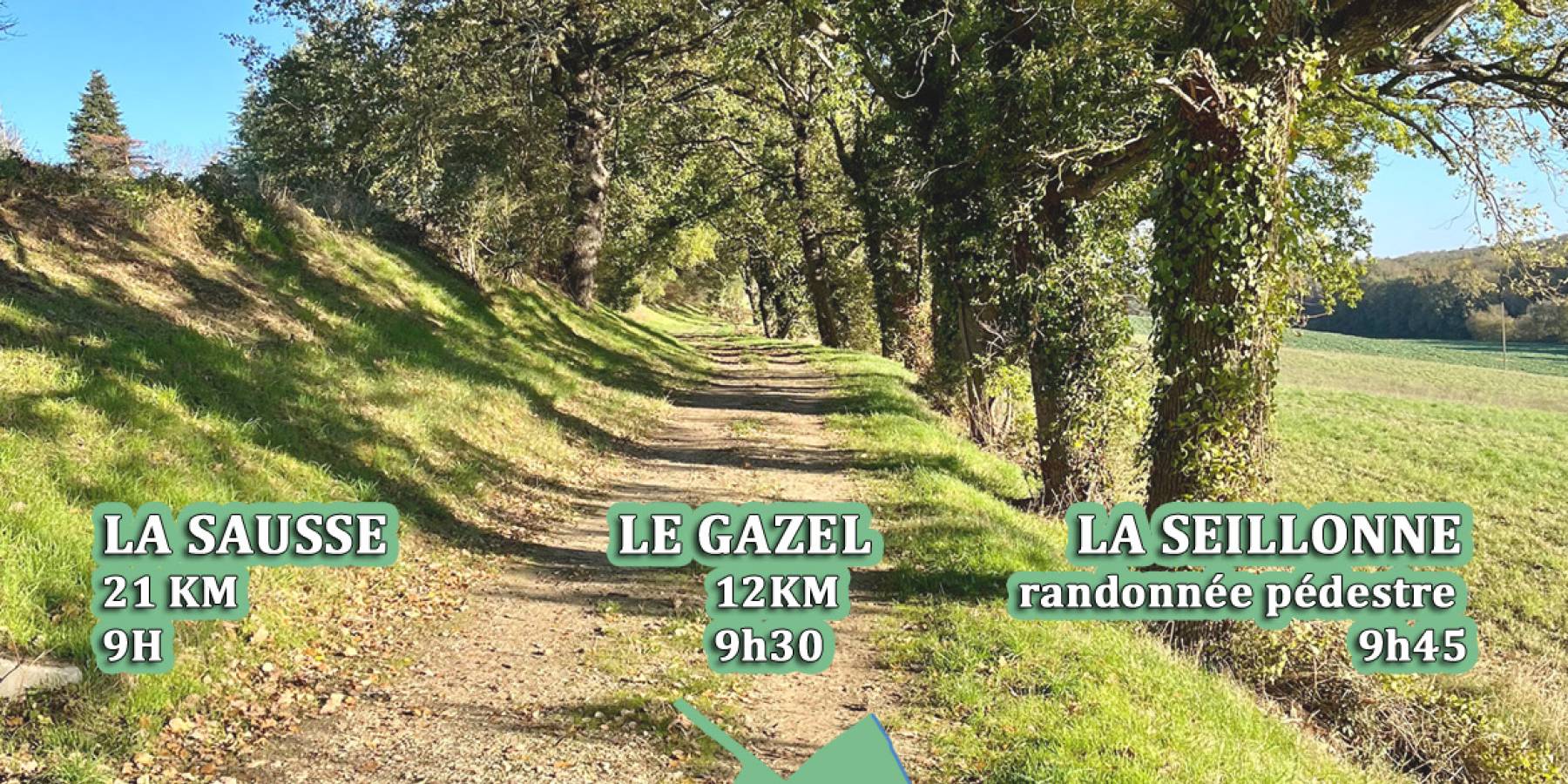Notre équipe de choc vous a concocté des parcours à majorité constitués de chemins, tout en privilégiant les commodités. Au travers de cet événement, nous avons souhaité partager notre passion et la mettre au profit de nos enfants afin de récolter des fonds pour améliorer le fonctionnement de nos écoles, participer aux activités organisées par le corps enseignants. La Sausse : 21km - D+ 350 m environ Le Gazel 12km - D+ 180 m environ La Seillonne : 8km - randonnée non chronométré