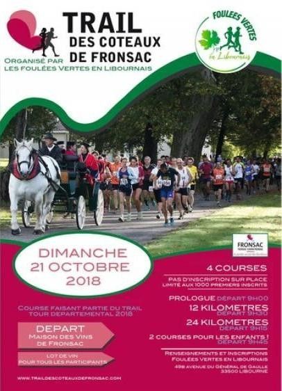 Course nature traversant les vignobles de Fronsac avec des passages dans bois et sous bois. Pour les coureurs, 2 distances sont proposées à travers chemins et sentiers : 12kms et 24 kms. Les courses seront en semi-autonomie avec plusieurs ravitaillements uniquement avec de l'eau sur la course. La possibilité est offerte aux marcheurs d'utiliser le petit parcours (12 kms) pour une randonnée libre ; les coureurs restent toutefois prioritaires.
