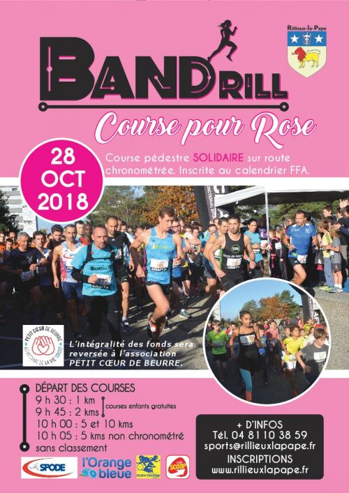 Cette année, la Band'rill propose 2 parcours enfant gratuits et même une course pitchoune pour les tout-petits et un 5 et un 10 km pour une seule et même cause, celle de donner son souffle et son aide à la petite Rose et à l'association Petit cœur de beurre. Top départ des inscriptions. Attention, le nombre de places est limité à 500 coureurs !