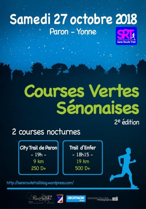 Les Courses Vertes Sénonaises auront lieu, pour leur 2ème édition, le 27 octobre. Elles regroupent pour cette première édition deux trails nocturnes, au départ de Paron.
