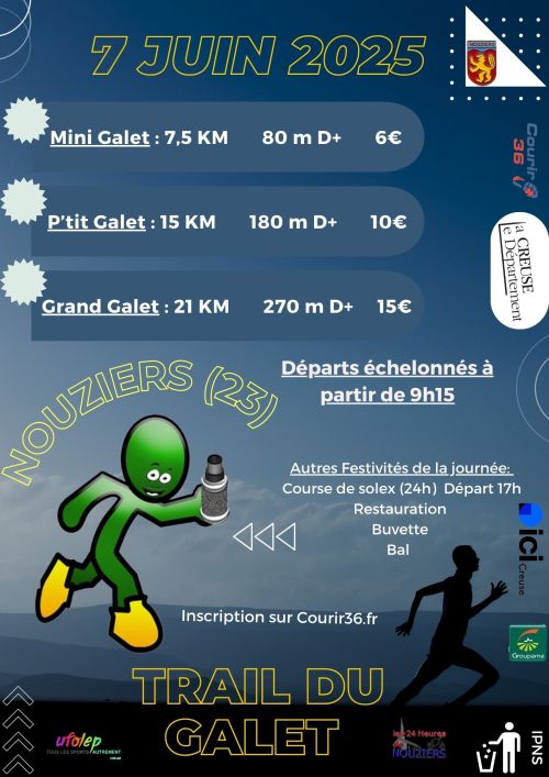 Le trail du Galet 2024 se déroulera à Nouziers (23350) le samedi 18 mai. 4 courses sont au programme ce jour-là :