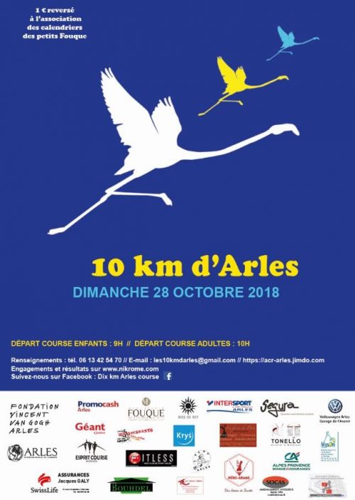L’association des 10 km d’Arles organise la 22e édition des 10 km d’Arles. Parcours en boucle intra-muros empruntant uniquement les routes goudronnées. La course est ouverte aux licenciés(es) et non licenciés(es) des catégories cadet, junior (autorisation parentale exigée pour les mineurs(es)), espoir, sénior, M1, M2, M3, M4 et plus, masculin et féminin. Courses enfants à partir de 8h50 (300m – 1km – 1,3km – 2,6km).
