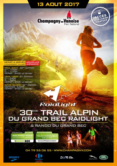 L’Office de Tourisme organise avec son équipe de bénévoles la 30ème édition du Trail Alpin du Grand Bec Raidlight, le Dimanche 13 août 2017. Cette édition proposera : 2 distances dont un « 30km » et un « 14km » ainsi que la classique « randonnée » non chronométrée, destinée aux familles. Les deux épreuves « compétitions » sont inscrites au Calendrier FFA des courses Hors-stade ; elles remplissent tous les critères de sécurité, d’encadrement, d’assurance, exigés par la préfecture. Les itinéraires prévus empruntent pour une grande partie les sentiers et pistes d’alpages sur le territoire de notre commune.