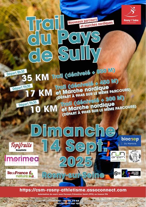 Le Trail du Pays de Sully est le trail organisé par la section Athlétisme du CSMR, en complément des courses du Château de Sully que nous organisons en Mai.