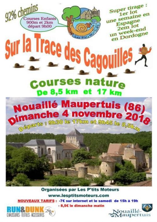 5ème édition de cette course nature où vous retrouverez 2 distances : 17 et 8,5km (90% de chemins) 1 lot offert à chaque inscrit, nombreux lots de qualité, 2 ravitaillements sur les parcours 1 ravitaillement de fin de course composé exclusivement de "gâteaux maison"