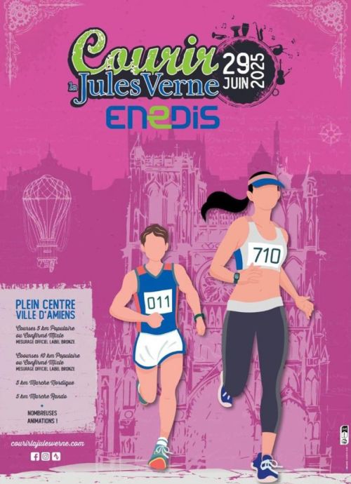 Courir La Jules Verne donne rendez à tous les amateurs de course à pied, compétiteurs ou pratiquants occasionnels. De retour en plein coeur de la ville, Courir la Jules Verne et ses trois épreuves compte accueillir 5000 coureurs. Vous serez nombreux à venir vous confrontez sur le 10 ou 5 kilomètres dont les arrivées se feront devant la gare d'Amiens