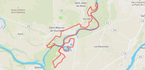 Le circuit VTT est un parcours de 10 km entre le stade Régis Perrin à Saint-Maurice de Gourdans jusqu’à Saint-Jean au bord de la rivière au niveau des tennis. Le parcours emprunte à 80% des chemins agricoles et sentiers et 20% de route vicinale communale et départementale. Dénivelé +48 Le circuit traverse la commune de Saint Maurice de Gourdans puis longe la rivière d’Ain et les vorgines jusqu’à ST Jean Niost Le circuit est sécurisé par des signaleurs à chaque entrée de portion route et fin de section route et à chaque croisement de route. La deuxième partie du parcours VTT se déroule sur les bords de la rivière d’Ain et notamment les Vorgines il est donc strictement interdit de rouler en dehors du chemin et de laisser des déchets.