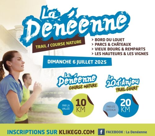 Venez découvrir « Le 20 d’Anjou » un trail court de 20 kms départ à 9 h entre les coteaux de l’Aubance et du Layon . Ou participez à une course nature de 10 kms dans la vallée aux bords des rivières du Louet et l’Aubance « La Denéenne « départ à 9 h 00 Inscription sur KLIKEGO .... toujours un beau lot pour les coureurs !.