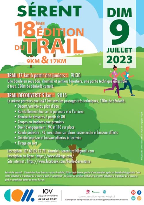 TRAIL à partir de junior. Tracé à travers les magnifiques landes autour de Sérent le parcours emprunte à 90% des chemins et sentiers forestiers, une partie technique accessible à tous, 320m de dénivelé cumulé, super rythmé où pas une seconde vous aurez le temps de vous ennuyer. Récompenses: