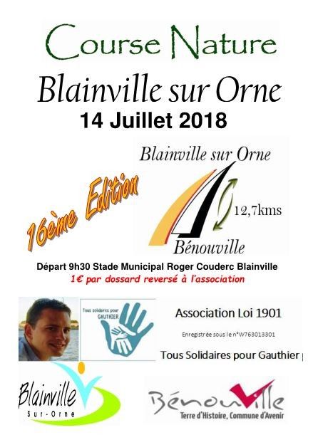 La course Nature est organisée par les villes de Blainville sur orne Bénouville et les associations sportives respectives. Le parcours d’une distance de 12 Km 700 empruntera le chemin de halage du canal Caen la mer, le parc du château de Bénouville, les chemins et sentiers de campagne ainsi que les rues de nos communes. Des moments historiques avec le pont de Pegasus bridge. Cat. autorisées CA->V5.