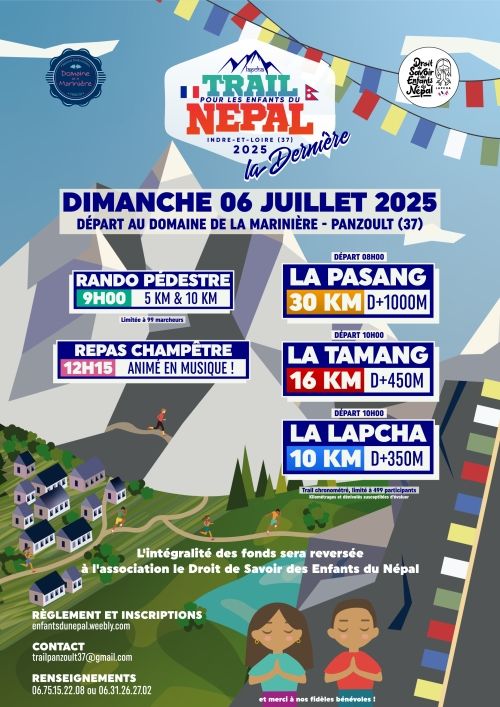 L'association Le Droit de Savoir des Enfants du Népal organise son ULTIME trail chronométré ! Un trail placé toujours dans la convivialité et le partage pour un seul but : aider à la scolarisation des enfants dans le village de Lapcha au Népal !