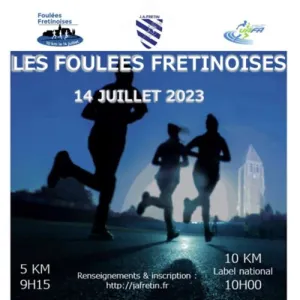 Les Foulées Fretinoises. Le parcours des foulées Fretinoises est bien connu pour être l'un des plus plats de l'hexagone. C'est l'occasion rêvée pour améliorer son chrono sur la distance. Cette année, 6 meneurs d'allure seront là pour vous emmener dans les meilleures conditions du départ à la ligne d'arrivée dans les temps ! Fondée en 1993, cette course au label national est qualificative aux Championnats de France du 10 Km. Cette compétition est classée dans le top 15 des courses de la région.