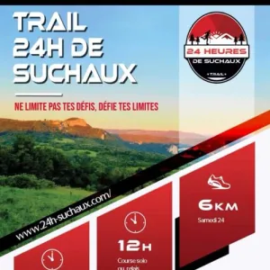 Le trail des "24 Heures de Suchaux" est une course à allure libre d’endurance par élimination, qui se déroule en individuel ou en équipe, le tout sur une boucle de 6 km pour 300m de dénivelé positif. En individuel ou relai de 2 ou 3 personnes , sur 12h, 24h ou trail de 10km, choisissez le format qui vous conviendra le mieux afin de vous dépasser et terminer un maximum de boucles !