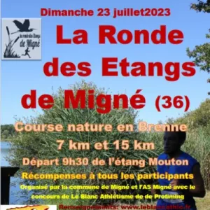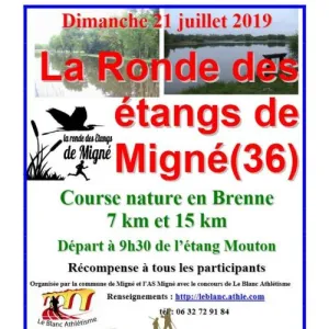La Ronde des Etangs des Migné. Cette course pédestre en pleine nature au cœur du Parc régional de la Brenne passe à coté de 7 étangs. Elle est organisée par l'association sportive de Migné avec l'aide de la commune et le soutien technique du Blanc Athlétisme.