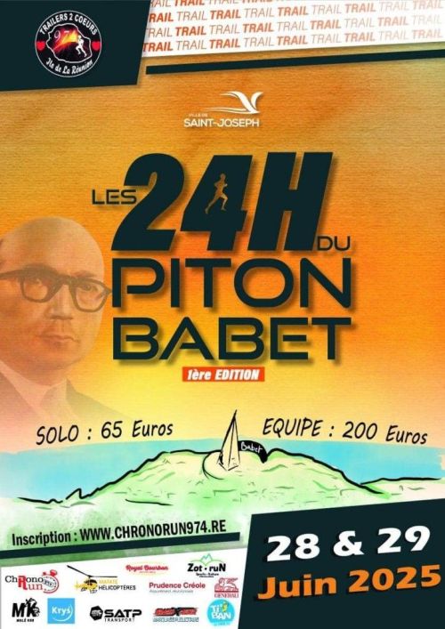 Les 24 Heures du Piton Babet est une course Trail en nature, avec une partie route, organisée par l’association Trailers 2 Coeurs 974. Le concept des 24h, est basé sur une course de trail réalisée sur un parcours de 1790m avec un D+96m, le but étant de faire le plus de tours possible en 24h.