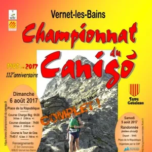 Championnat du Canigó. Boucle en montagne empruntant une partie du tracé de la course classique jusqu’au Col de Jou : puis direction la Tour de Goa point culminant du parcours à 1268m, et retour vers Vernet par la vallée de la Rotja. 11.5km pour 650m de dénivelée + et -.