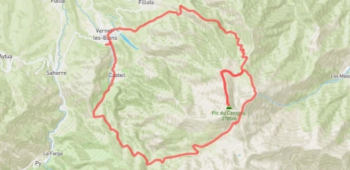 Au départ de Vernet-les-Bains avec 41 km pour une double ascension avec un dénivelé de 2600 m positif et négatif qui mènera les coureurs sur les crêtes du barbet (2745 m d’altitude) puis le pic du Canigou emblème de notre région à la découverte du massif du canigou qui allie effort intense, paysages grandioses et ambiance au rendez-vous en pays catalan.