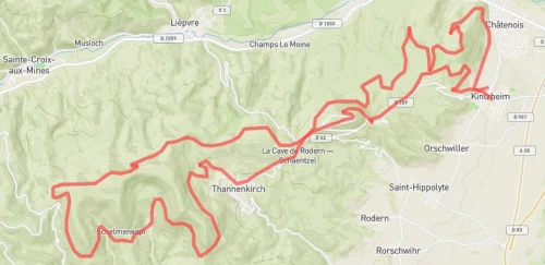 Vous passerez par l'un des monuments historiques les plus visités de France, ainsi que le massif du Taennchel avec ses rochers mystiques, les trois châteaux de Ribeauvillé, le Château de Reichenberg, le sentier du vallon des moulins, la roche des fées...