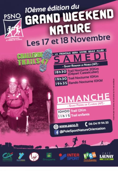 10ème édition de la fameuse Nocturne Lot & Garonnaise. La nouveauté avec le trail court 10km, et la version longue en ligne de 20 km ! Les organisateurs du PSNO concoctent chaque années des surprises et des itinéraires différents, ce sera forcément le cas de cette 2ème édition de la nocturne inscrite au challenge des trails 47