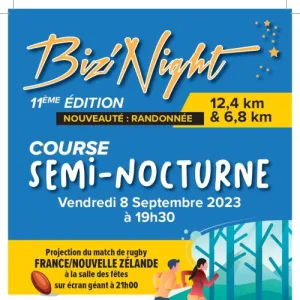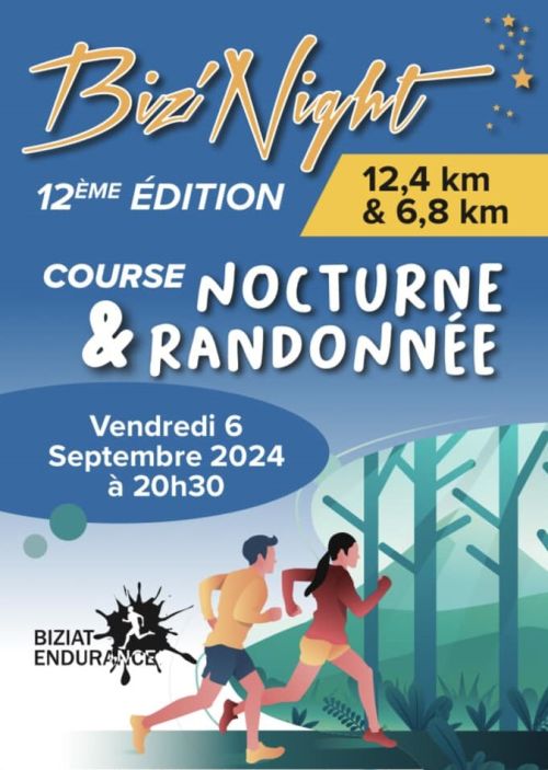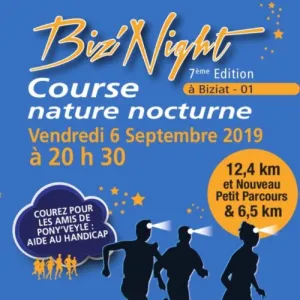 Vivez une aventure unique à La Biz'Night, une course nocturne à Biziat, charmant village de l'Ain, en Auvergne-Rhône-Alpes. Parcourez 6,8 km ou 12,8 km à travers des sentiers naturels, illuminés par vos lampes frontales, au cœur de paysages enchanteurs mêlant campagne paisible et ambiance féérique. Rejoignez cette fête conviviale, alliant défi sportif et bonne humeur, et laissez-vous séduire par le charme authentique de Biziat. Venez braver la nuit et créer des souvenirs inoubliables !