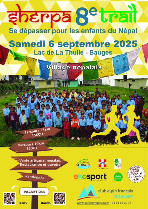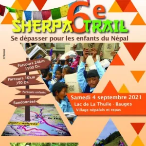 Le Club Alpin Français de Chambéry et la commune de La Thuile organisent le Sherpa Trail à La Thuile (73190), commune située au cœur du parc naturel régional des Bauges. Cette course est organisée dans le cadre d’une action solidaire dont l’association coordinatrice est l’Arbre à Mel. Cette association accompagne des projets humanitaires autour de la scolarisation des enfants au Népal, le financement de la rénovation d’écoles, l’accès à tous à la scolarité (achats d’uniformes, de matériel scolaire).